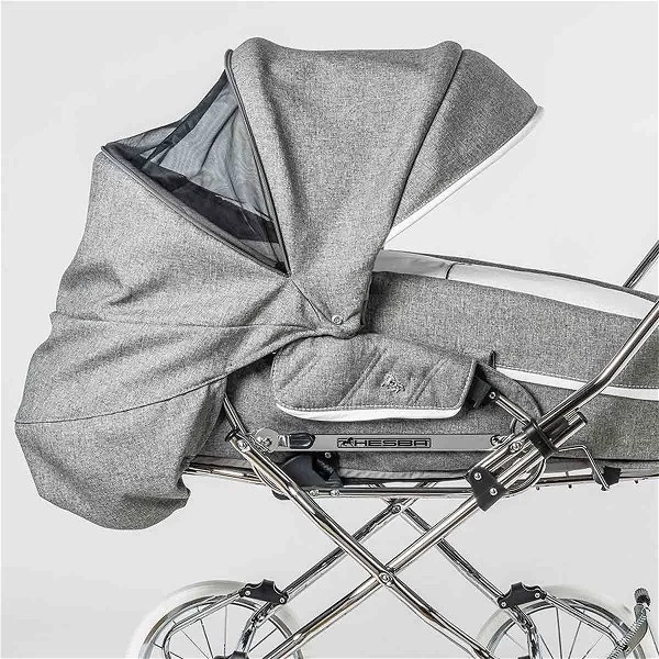 Der Hesba Calido Kombikinderwagen ist mit einem Multifunktionsverdeck inklusive Sonnenblende, integriertem Insektennetz und Belüftung ausgestattet. Mit seinen guten Federungseigenschaften verfügt der Kinderwagen über einen Fahrkomfort der die höchsten Ansprüche durch das exklusive Fahrgestell mit Soft- Gelenkfederung erfüllt. Der Schiebegriff ist höhenverstellbar und einklappbar. Die abnehmbaren, kugelgelagerten und luftbereiften Metallspeichenräder sind mit Sicherheitsreflexionspunkten ausgestattet. Die Räder können besonders schnell abgesteckt werden und die Babytragetasche wird einfach nur aus dem Wagen genommen. Eine extra Befestigung ist nicht notwendig, da die Tasche von der abgewinkelten Fußstütze sicher gehalten wird.