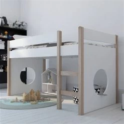Nature Kid Finn Hochbett Weiß/natur Mit 2 Bullaugenpaneelen Liegefläche 90 X 200 Cm