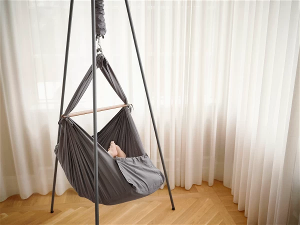 Die Moonboon Federwiege überzeugt mit eleganten Querstange in dunklem Nussbaumholz, einer Matratze mit 100% natürlicher, hypoallerger Kapokfüllung und Stoffseiten aus weicher, ökologischer Baumwolle. So schläft ihr Baby sicher und geborgen.