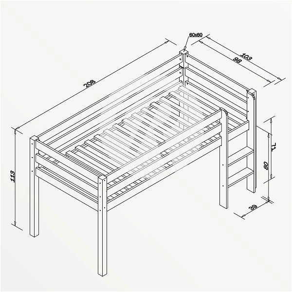 - Liegefläche: 90 x 200 cm