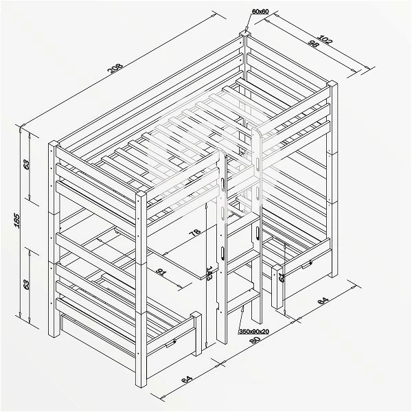 - Maße: 102 x 185 x 208 cm (B x H x L)