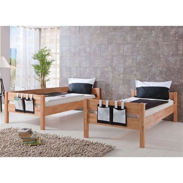 Das Relita STEFAN Etagenbett ist ein Qualitätsbett aus Massivholz zu einem erschwinglichen Preis. Die schräge Leiter mit Grifflöchern kann wahlweise links oder rechts montiert werden und die umlaufende Absturzsicherung schützt vor dem Herausfallen. Das Etagenbett kann zu zwei Einzelbetten umgebaut werden, zwei Rolllattenroste sind im Lieferumfang enthalten. Dank zahlreichem Zubehör in verschiedenen Farben kann das Relita STEFAN Etagenbett individuell ausgestattet werden.